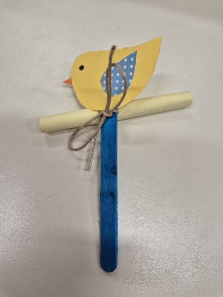 Na hodniku smo delili ptičke s pesmicami. Ko smo jih dali, smo zaželeli srečno pomlad. (Izak Tomšič, 3. b)
