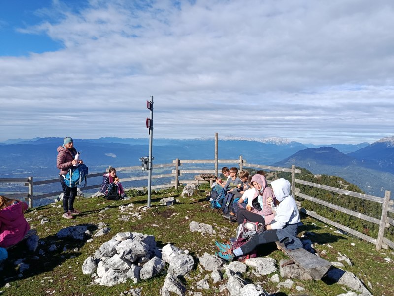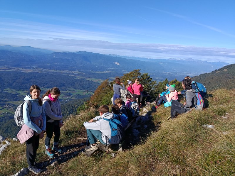 V soboto, 4. 10. 2025, smo se odpeljali do Gozda. To je vas, ki leži nad Seničnim pod vznožjem našega cilja. Krožna pot nas je vodila po strmih bregovih, kjer so nas table opozarjale na veliko nevarnost v snežnih razmerah. Sneg nas je tokrat počakal in zapadel šele naslednji dan, mi pa smo v prelepem soncu osvojili Tolsti vrh. Premagali smo dobrih 800 m nadmorske višine. Po malici se je sonce skrilo, dogajanje je popestril tudi padalec, ki nam je demonstriral postopek priprave na polet, nato pa se smeje odpeljal v dolino – mi pa smo jo naprej mahnili kar peš – po grebenu do koče na Kriški gori. V sproščenem vzdušju smo si dodobra odpočili, počistili zaloge iz nahrbtnikov in se smeje odpravili nazaj v Gozd, kjer nas je čakal prevoz domov.