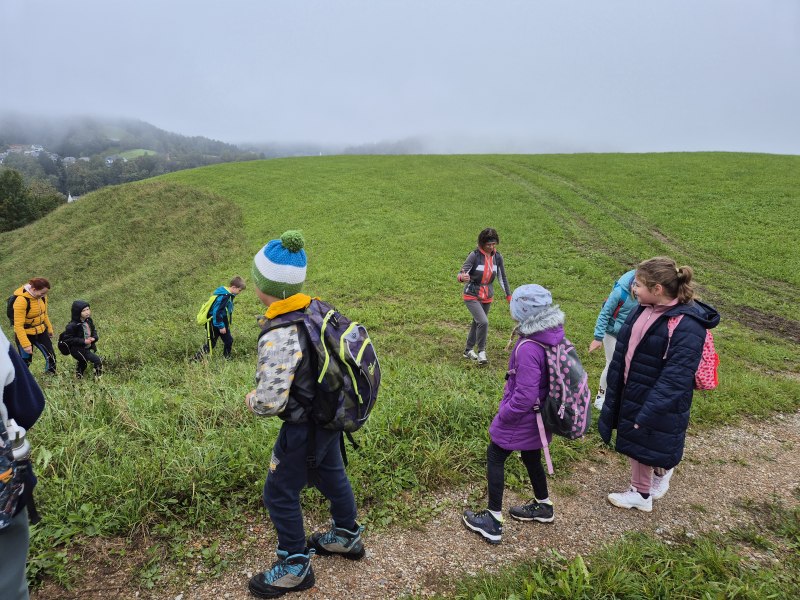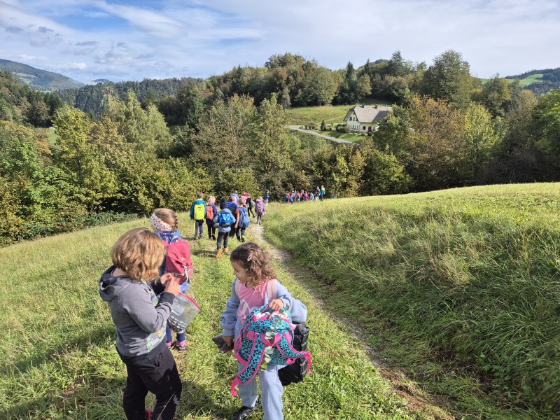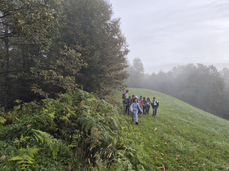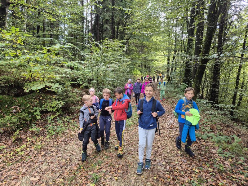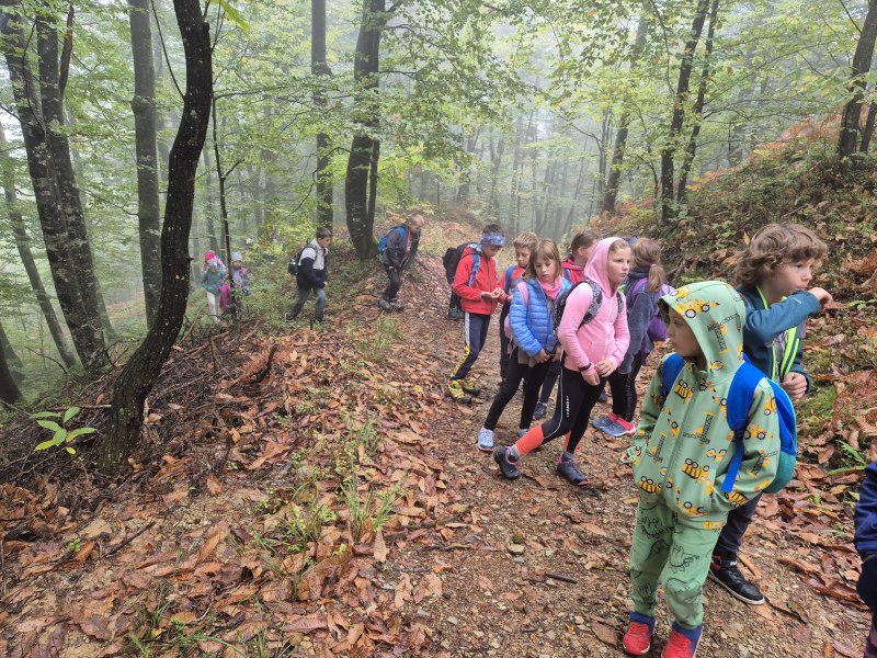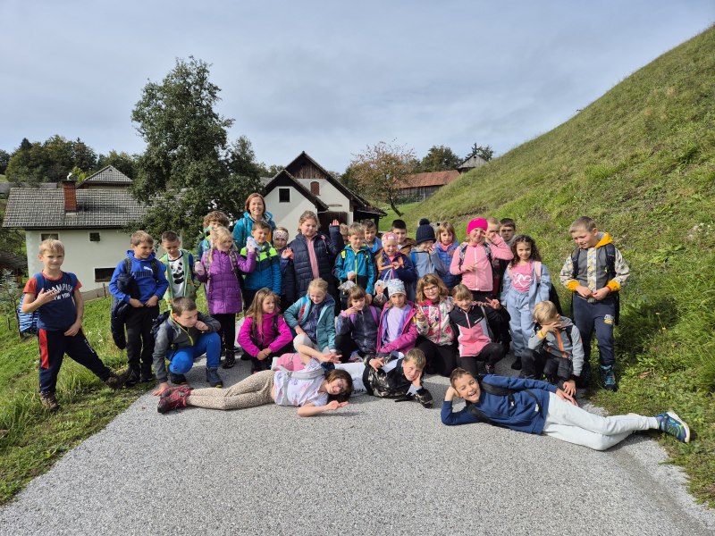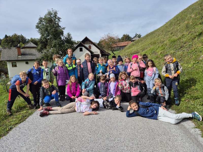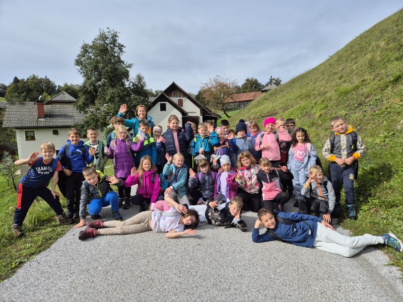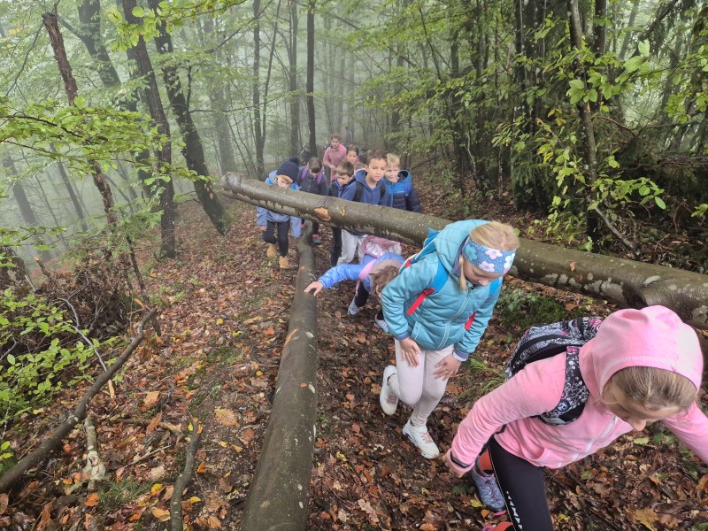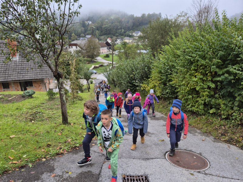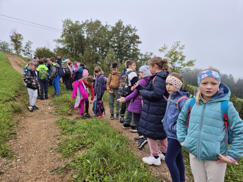 Teden otroka smo s tretješolci začeli s posebnim ponedeljkom. Odpravili smo se na pohod. Malce v skrbeh sicer, če nam je deževna nedelja morda le nekoliko preveč namočila začrtano pot. Izpred šole smo krenili čez Kovček proti Vinharjam. Naš cilj je bil sveti Urban nad Dobravo, a nas je kostanj pod podplati tako zelo premamil, da smo obrnili na poti proti Bačnam in se raje posvetili nabiranju gozdnih plodov, ki nam jih je radodarno nasula jesen. S polnimi žepi, vrečkami in nekateri celo s polnimi nahrbtniki smo dobrovoljni pregnali jutranjo meglo in se na kosilo vrnili v s soncem obsijane Poljane.