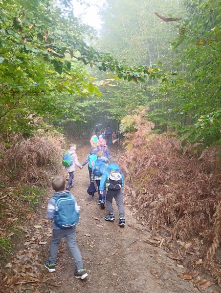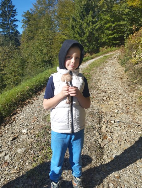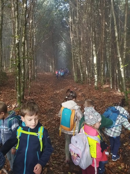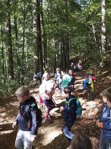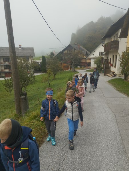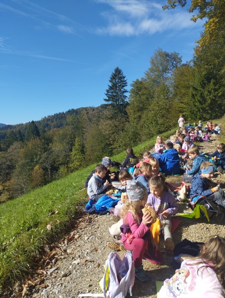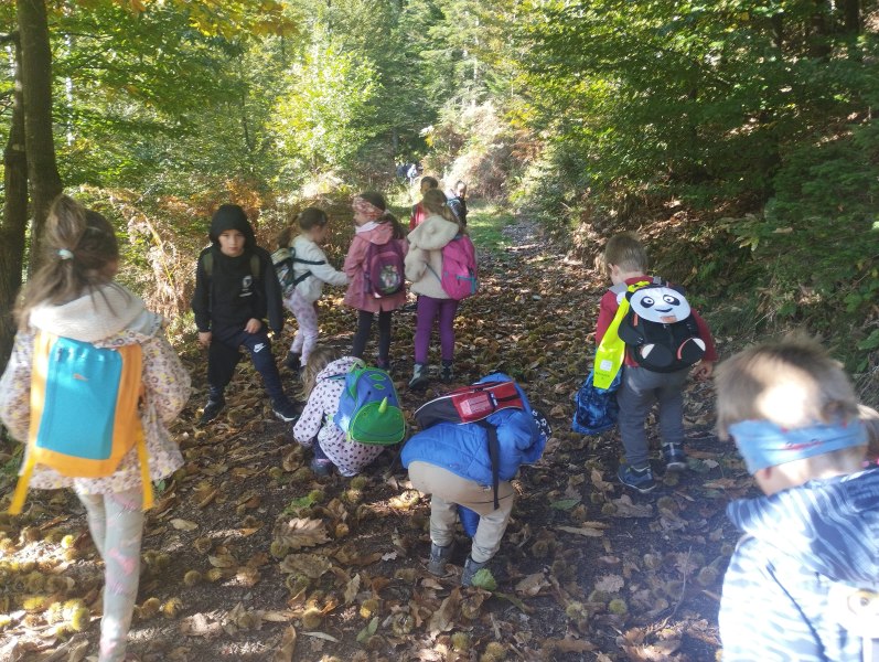 S polnimi pljuči svežega zraka so nabirali jesenske plodove – kostanje – ter se potopili v opazovanje narave. Z radovednimi očmi so občudovali tudi drobne mojstrovine, na katerih se je posvetila jutranja rosa: bleščeče se pajkove mreže, ki so krasile grmovje.
