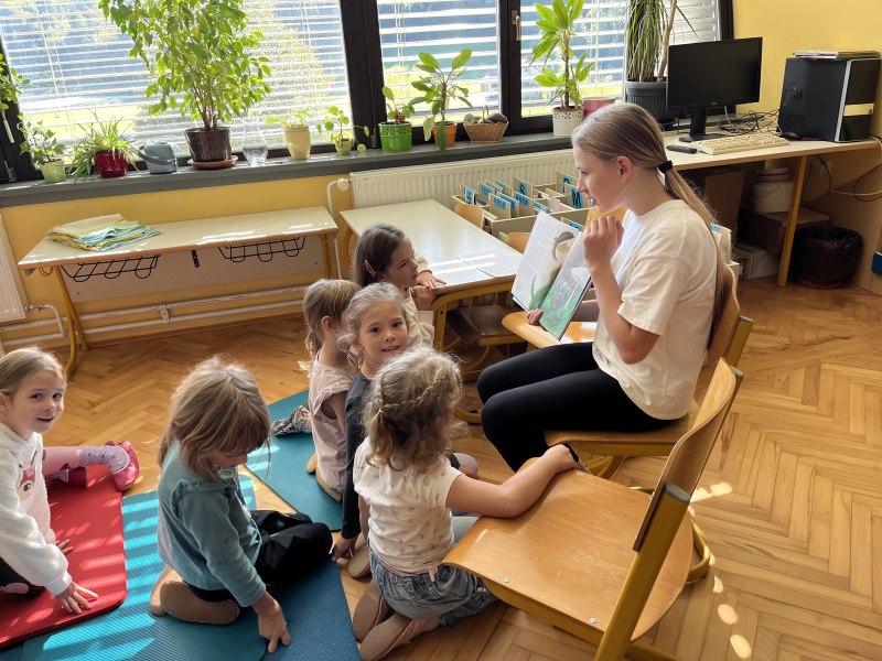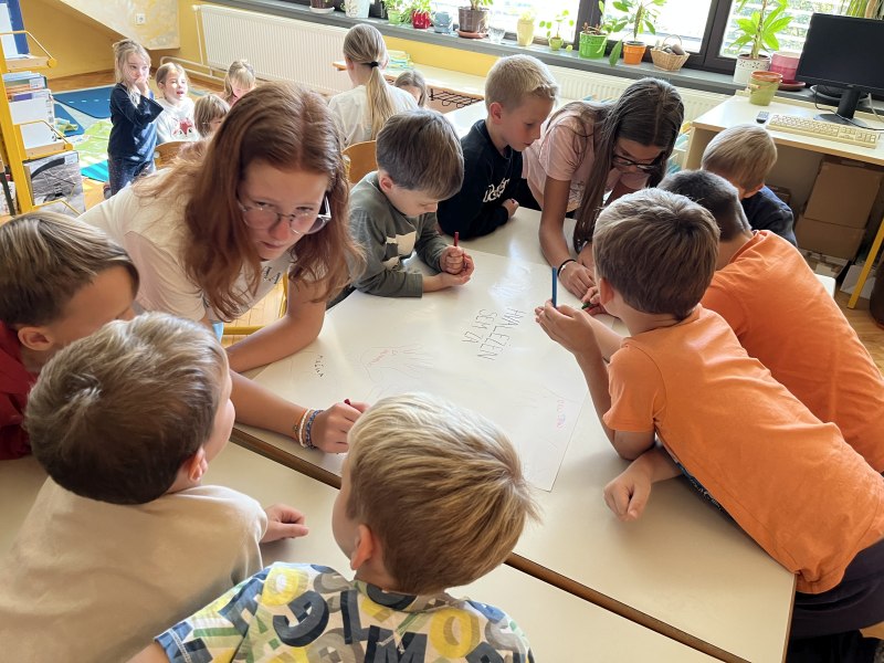 Posebno vlogo so imeli učenci OŠ Poljane, ki so z izjemno predanostjo vodili dejavnosti, brali mlajšim otrokom, jih spodbujali k razmišljanju in ustvarjanju. Njihova prisotnost je bila neprecenljiva – pokazali so, kako pomembno je, da starejši otroci namenijo svoj čas mlajšim in s tem gradijo mostove med generacijami.