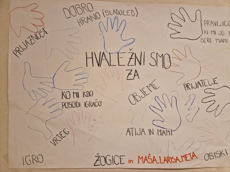 Ves teden so potekale raznolike dejavnosti, ki so otrokom približale vrednote hvaležnosti, spoštovanja in medsebojne povezanosti. Skupaj smo iskali bralni zaklad, se potopili v čarobni svet knjig in se pogovarjali o tem, za kaj vse smo lahko hvaležni – od drobnih vsakdanjih trenutkov do ljudi, ki nas obkrožajo.