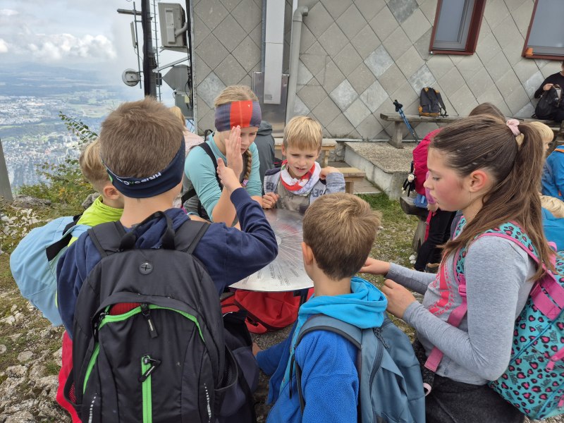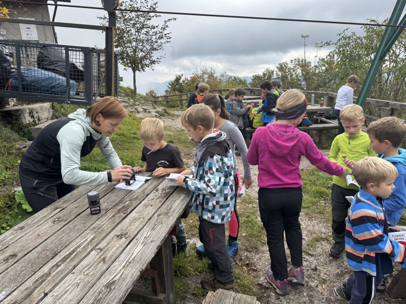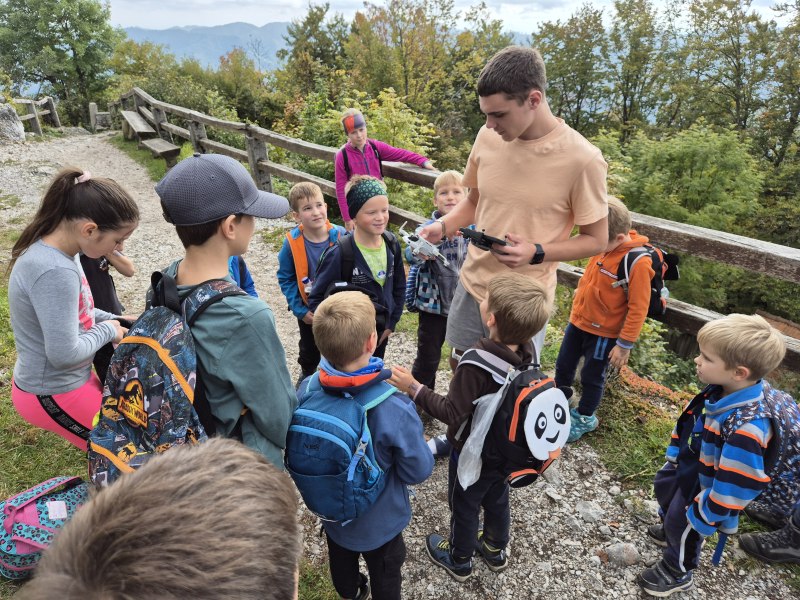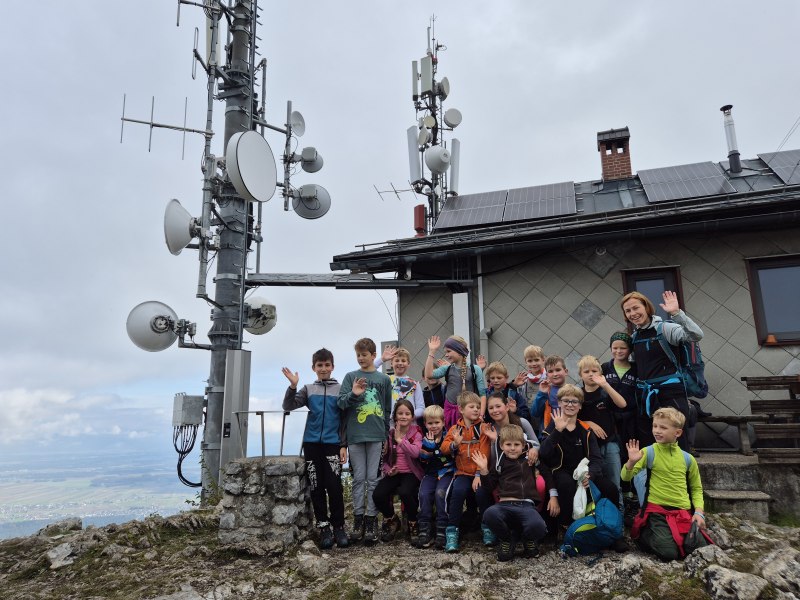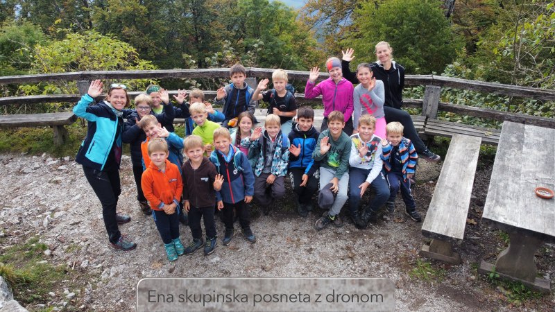 Na vrhu smo si privoščili malico, žigosali planinske knjižice in si vzeli nekaj časa za počitek. Kasneje se nam je zunaj pridružil tudi pomočnik iz koče in s svojim dronom posnel našo skupinsko fotografijo.