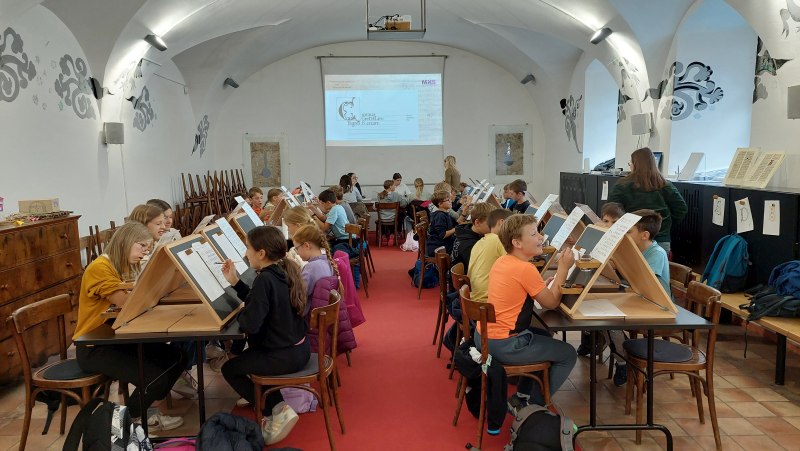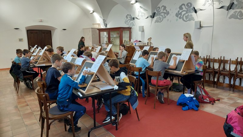 Kasneje smo se odpravili še v samostan Stična, kjer smo prav tako imeli zanimivo delavnico. Tokrat smo pisali s kaligrafsko pisavo, kar sploh ni mačji kašelj. Spoznali smo tudi življenje pisarjev oz. prepisovalcev starih besedil in si ogledali najstarejši samostan na Slovenskem ter spoznali življenje menihov, ki tam živijo.