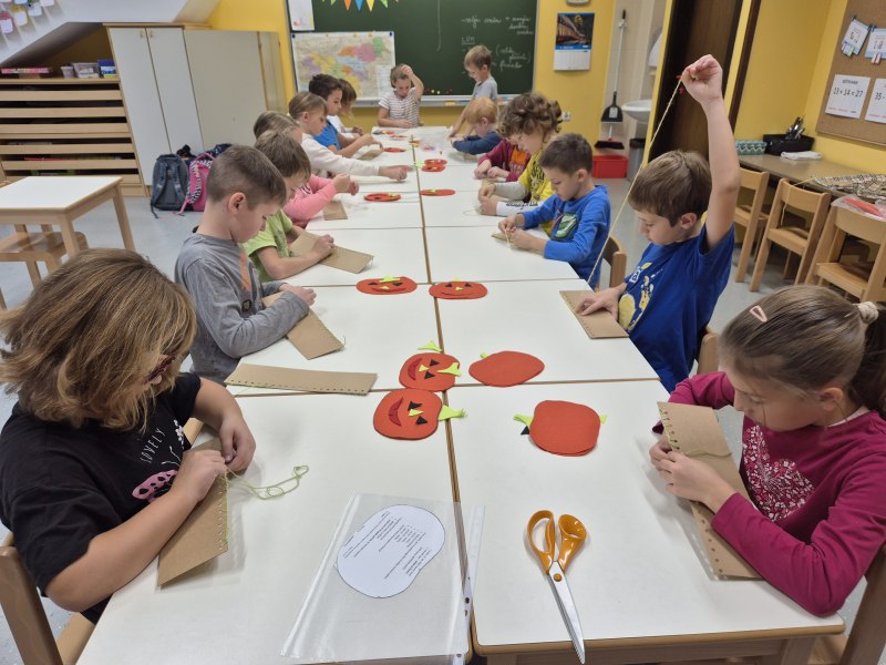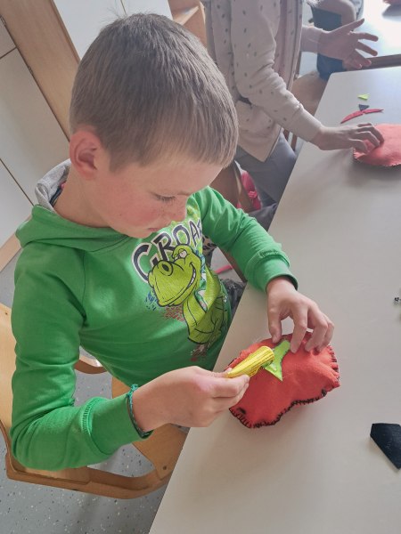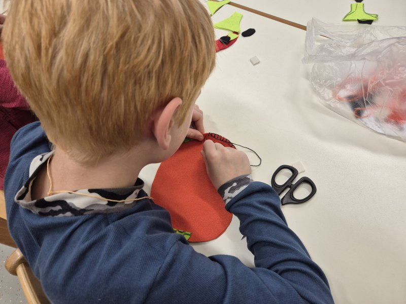 Danes smo imeli šiviljski dan. Imel sem se zelo dobro. Šivali smo bučo in dobro mi je šlo. Imeli smo se odlično.  (Jure, 3. a)