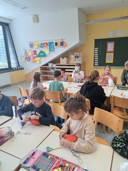 Najtežje je bilo dati nit v šivanko, najlažje pa je bilo šivati. Naučili smo se nov šiv in zašili jesensko bučo.  (Maja, 3. a)