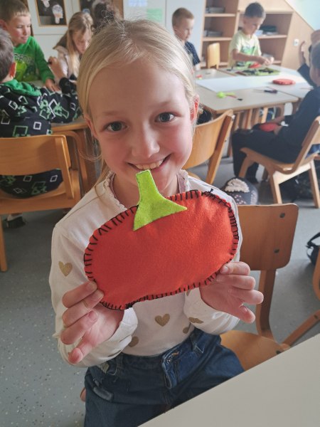 Bil je dober dan. Naučili smo se šivati. Zelo sem vesel, da smo naredili bučo.  (Bogdan, 3. a)