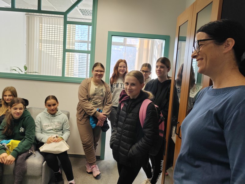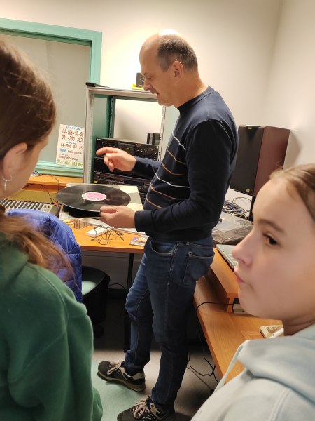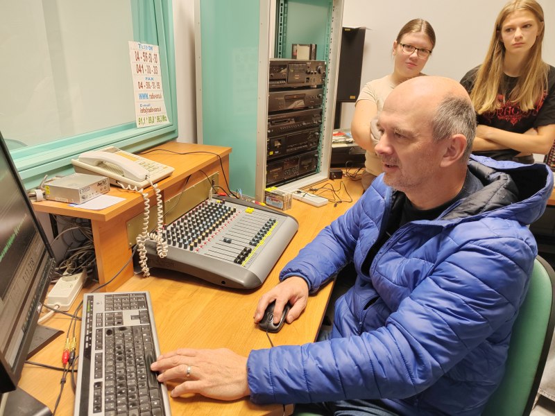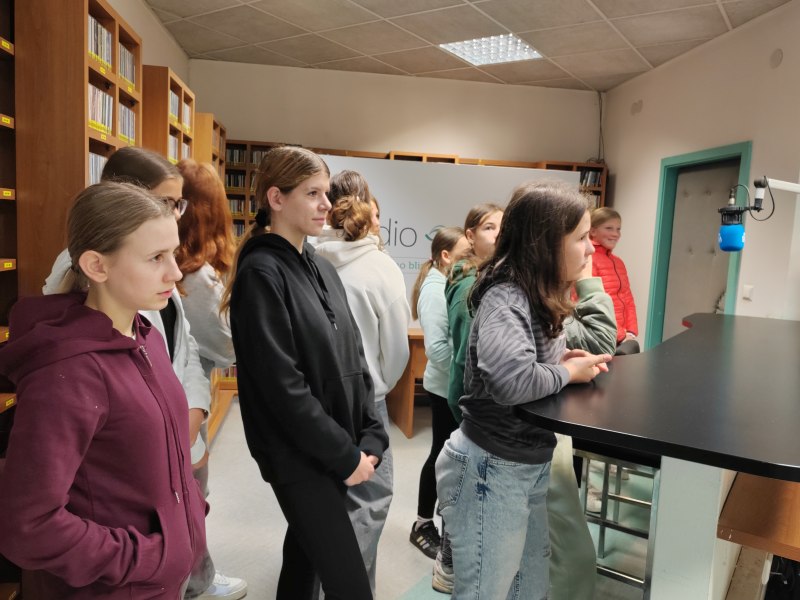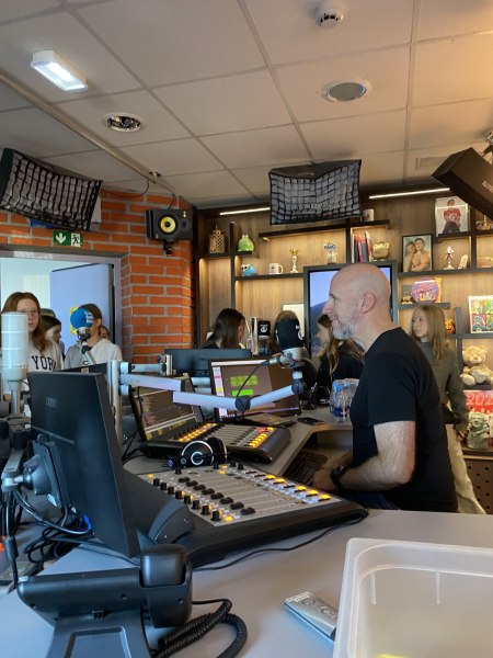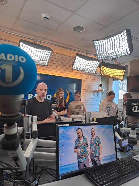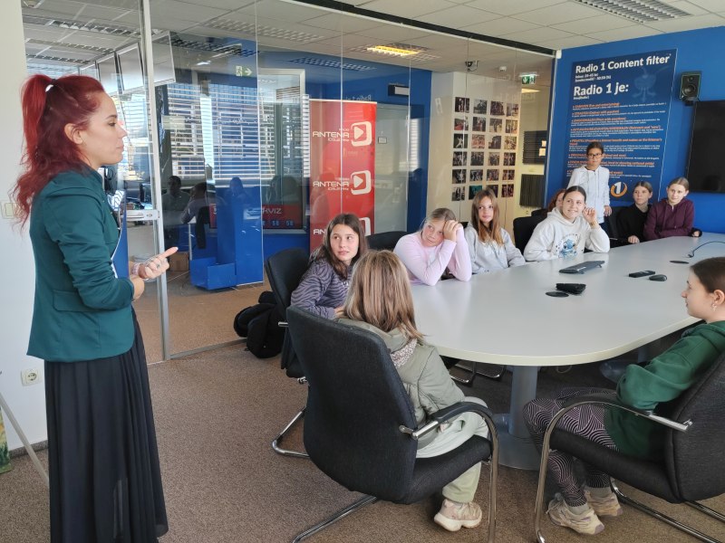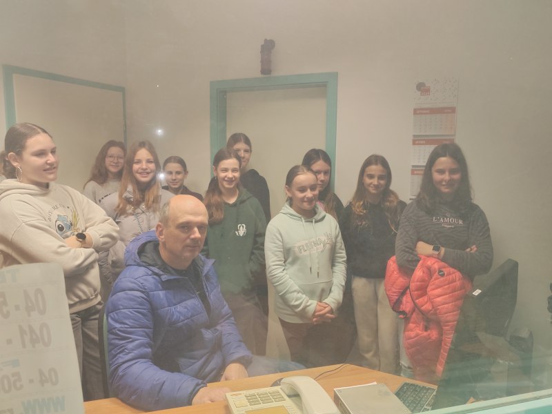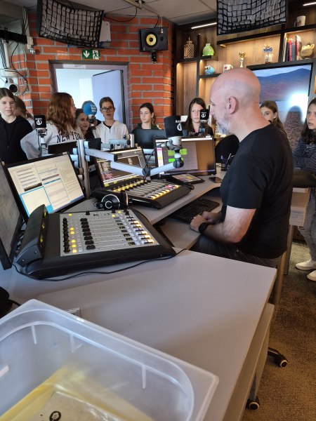 Po prostorih Radia 1 je učenke vodil gospod Blaž in jim predstavil način dela, jih vodil skozi različne sobe, na koncu pa v studio, od koder poteka program. Tam je polno zaslonov, mikrofonov, reflektorjev in seveda računalnikov.