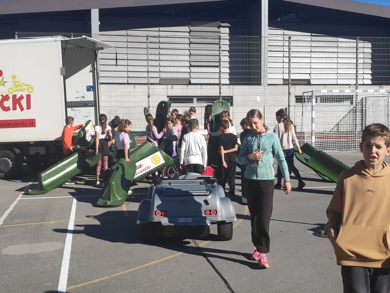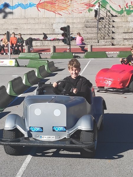 Tudi letos smo učenci 5. razreda doživeli najboljši dan dejavnosti, ko smo se vozili z avtomobilčki in se s tem učili pravil cestnega prometa.