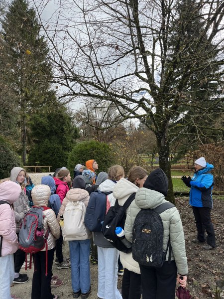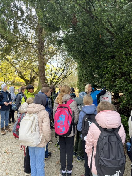 V ponedeljek smo se odpravili v Arboretum Volčji Potok. Tam smo se najprej pogovarjali o različnih drevesnih vrstah in njihovih značilnostih, nato pa smo izpolnili učni list. Med reševanjem smo izvedeli, kako velik je park in koliko drevesnih vrst obsega. Nato smo si ga ogledali še v živo, vmes pa odgovarjali na vodičkina vprašanja.