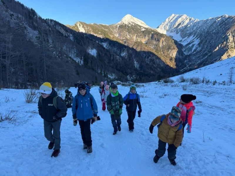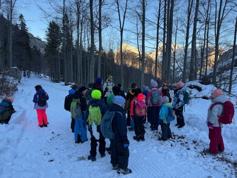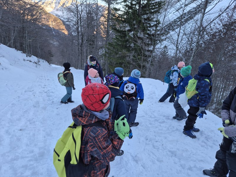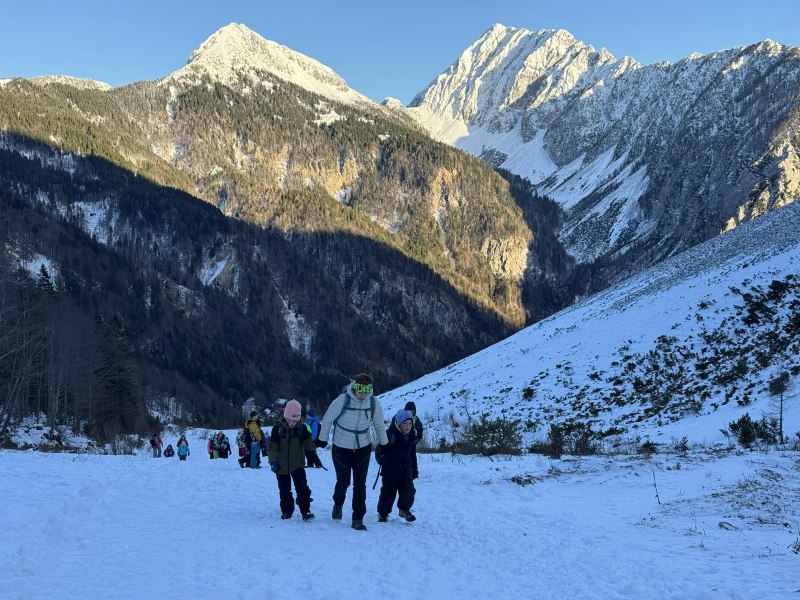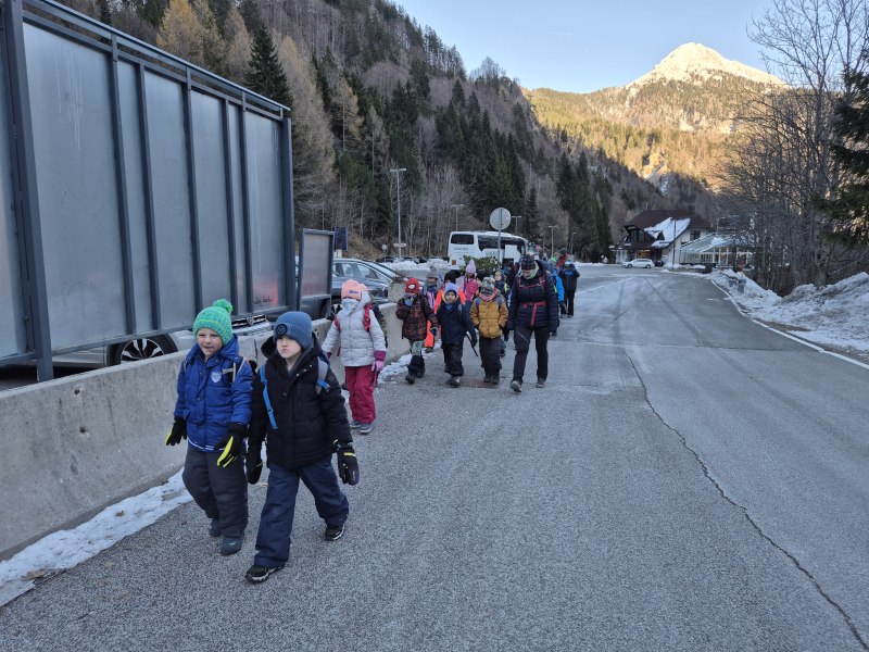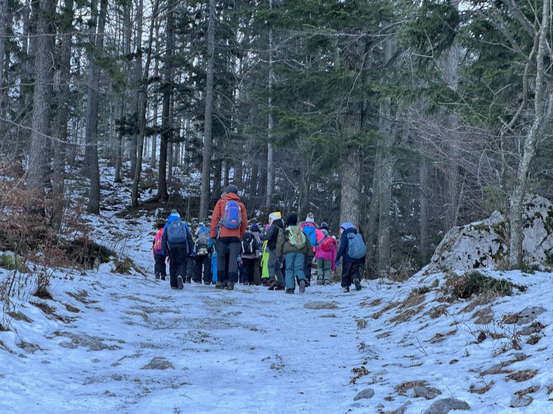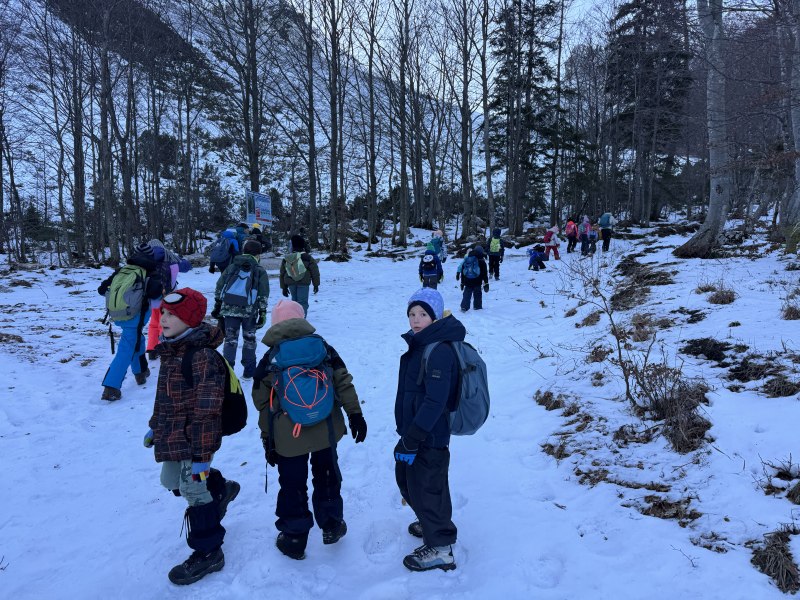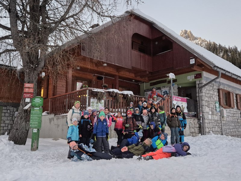 Planinci od 1. do 9. razreda smo v petek po pouku komaj čakali, da zamenjamo šolske klopi za zasnežene poti. Z avtobusom smo se odpeljali do Ljubelja, od tam pa smo se pogumno pognali v hrib. Sneg je škripal pod podplati, lička so rdela in hitro smo ugotovili, da zna biti strma pot po snegu tudi pošteno naporna. Nekateri so proti koncu že nestrpno pričakovali pogled na kočo in z medsebojno spodbudo smo vsi uspešno prišli do cilja. V koči smo se pogreli, pomalicali, si privoščili topel čaj, nekateri tudi dobre poslastice iz njihove kuhinje.