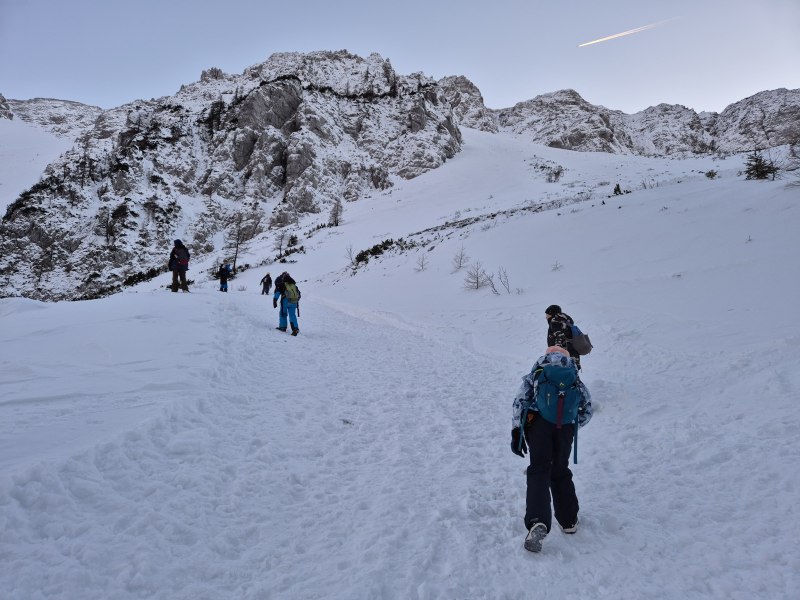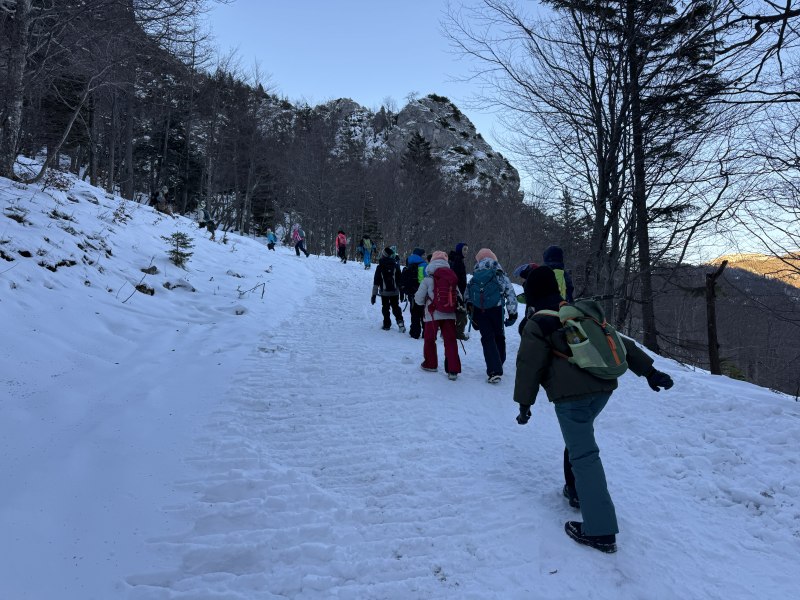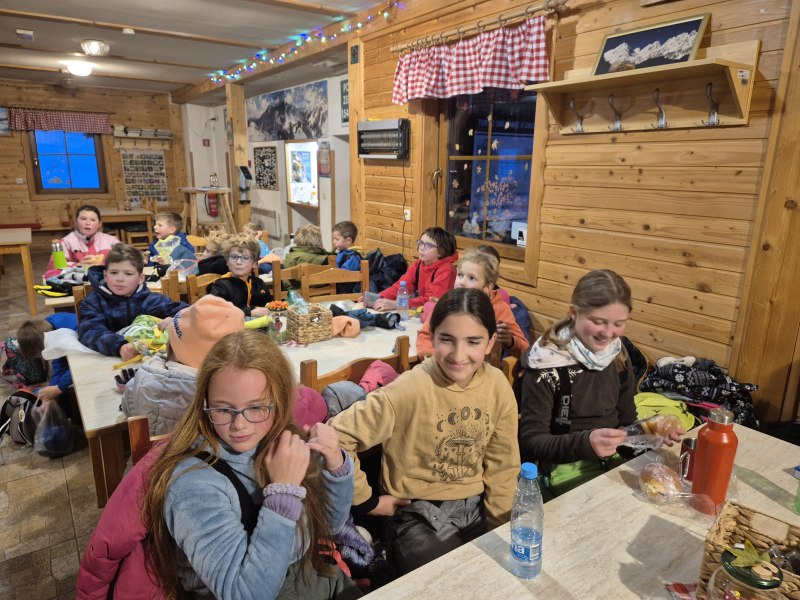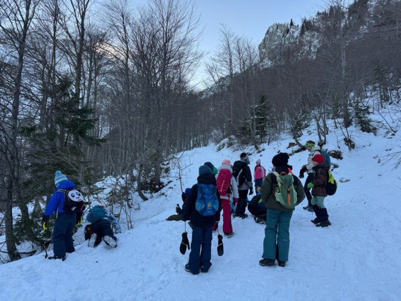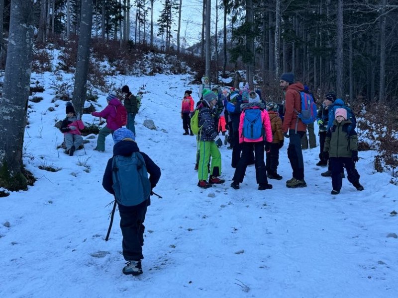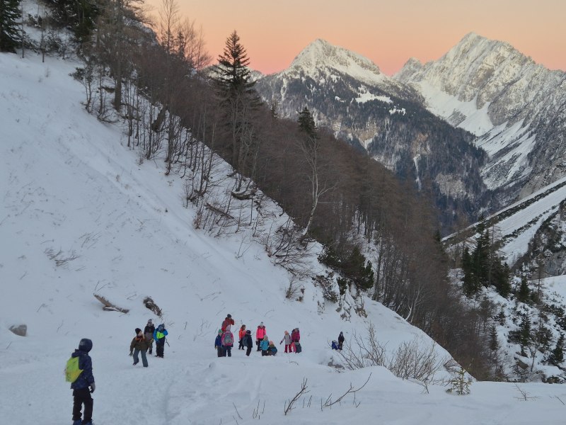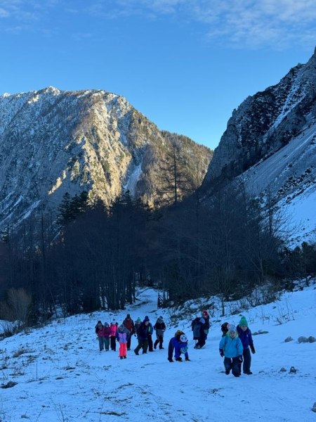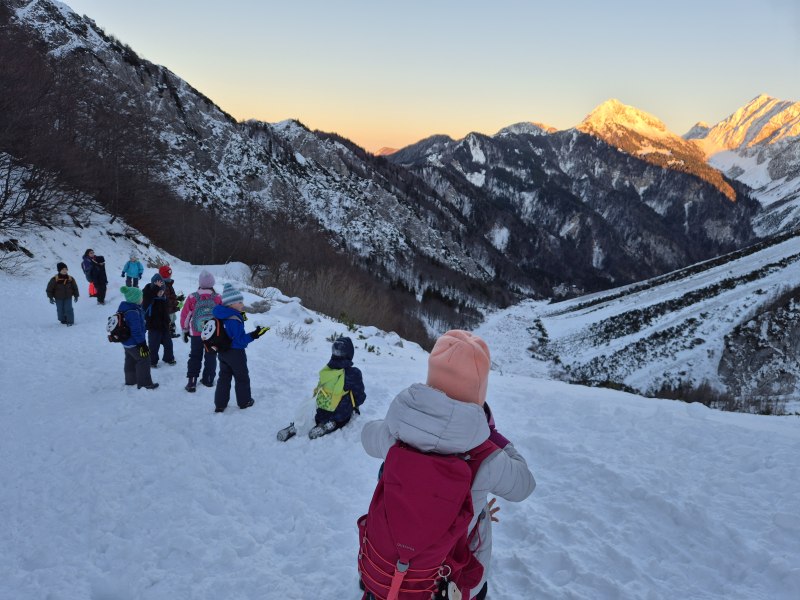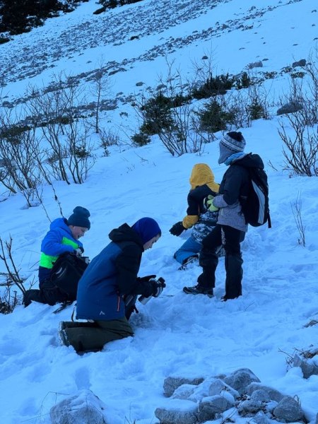 Planinci od 1. do 9. razreda smo v petek po pouku komaj čakali, da zamenjamo šolske klopi za zasnežene poti. Z avtobusom smo se odpeljali do Ljubelja, od tam pa smo se pogumno pognali v hrib. Sneg je škripal pod podplati, lička so rdela in hitro smo ugotovili, da zna biti strma pot po snegu tudi pošteno naporna. Nekateri so proti koncu že nestrpno pričakovali pogled na kočo in z medsebojno spodbudo smo vsi uspešno prišli do cilja. V koči smo se pogreli, pomalicali, si privoščili topel čaj, nekateri tudi dobre poslastice iz njihove kuhinje.