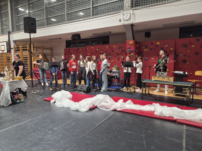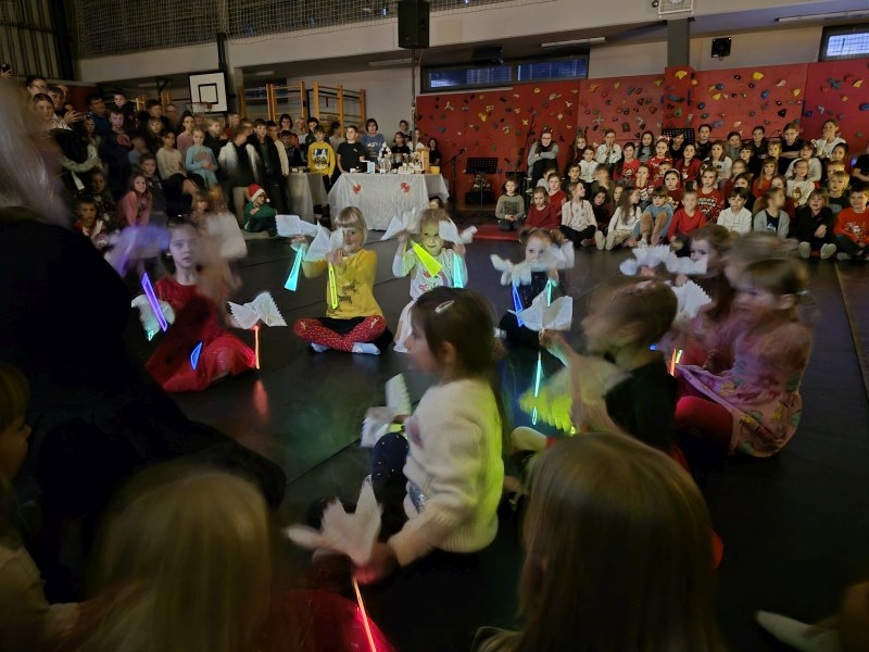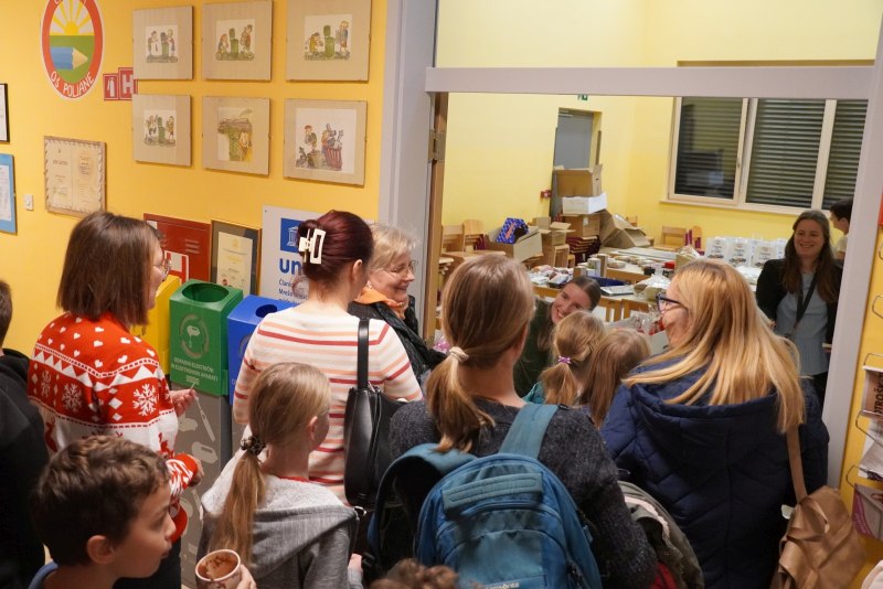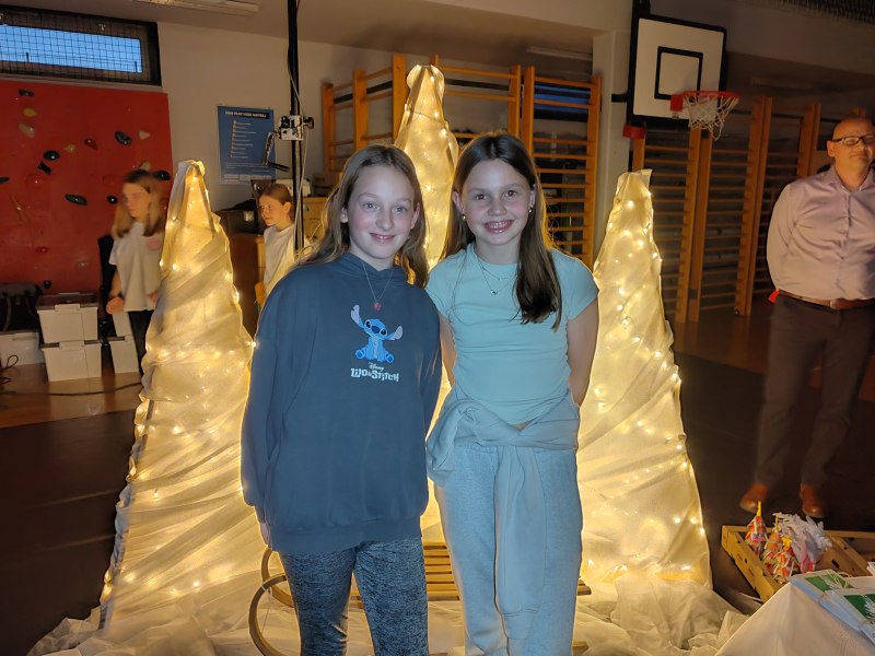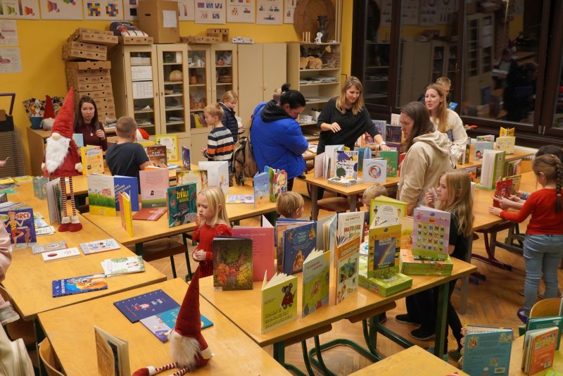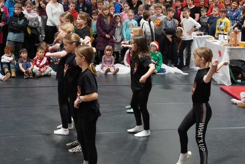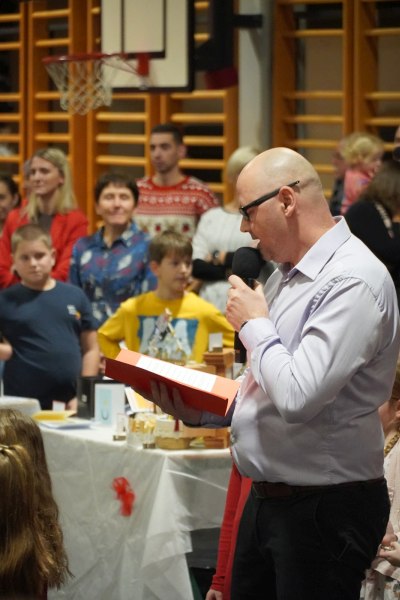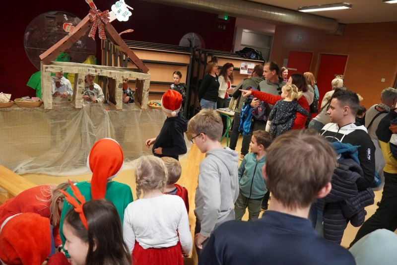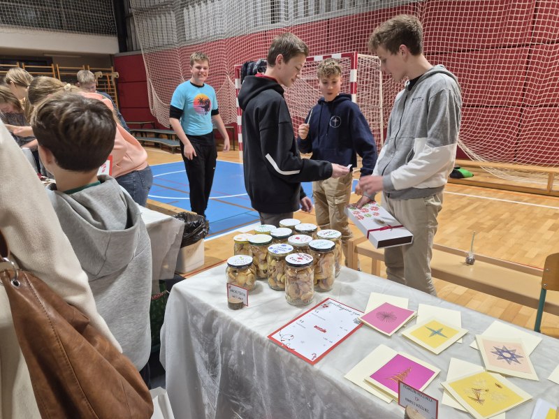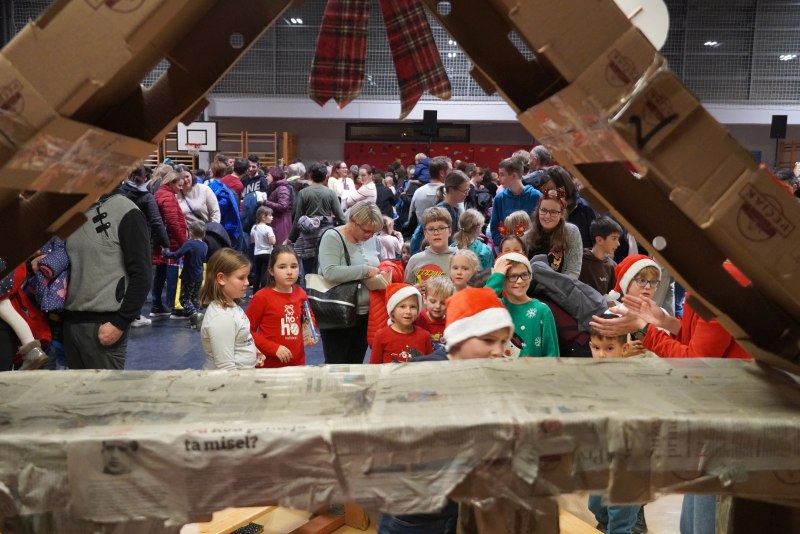 Učenci so se pomešali med obiskovalce in jim ponujali srečke – vsaka od njih je bila dobitna. Zaživela sta menjalnica knjig in božično kolo sreče, na balkonu pa so se otroci lahko pomerili v stavah o dolžini vrvi ter v floorballu oz. dvoranskem hokeju.