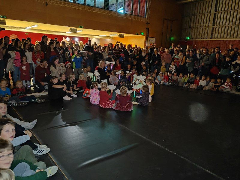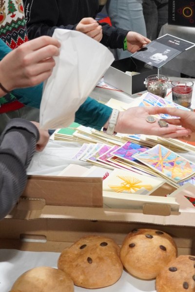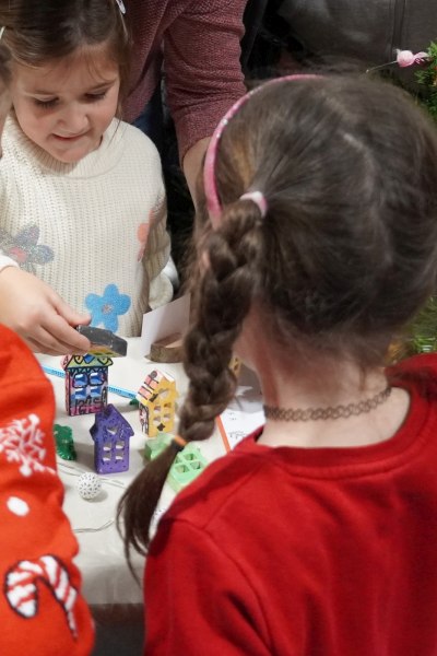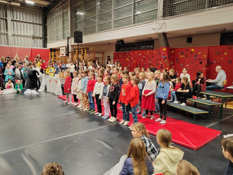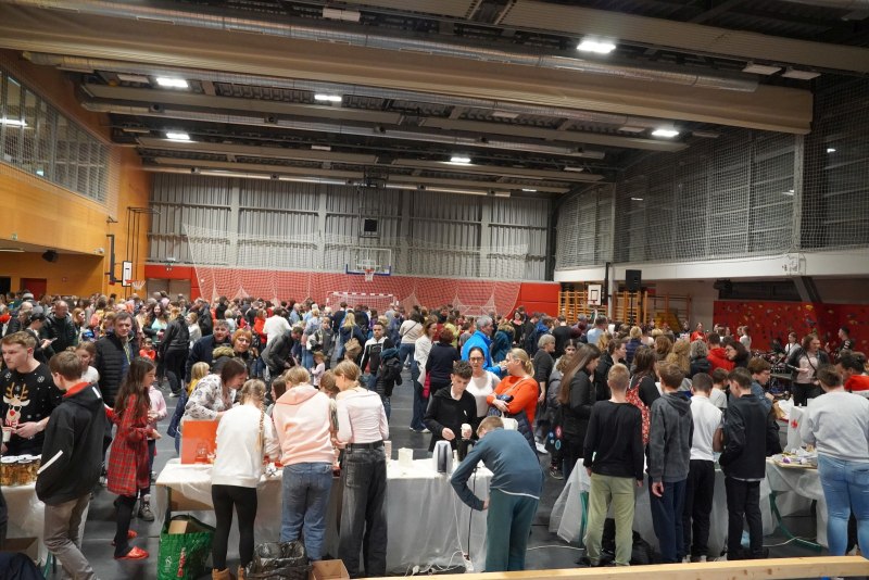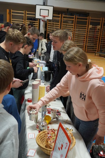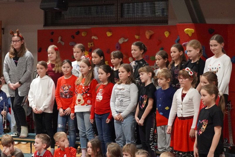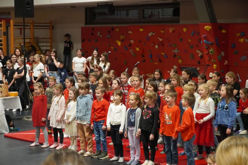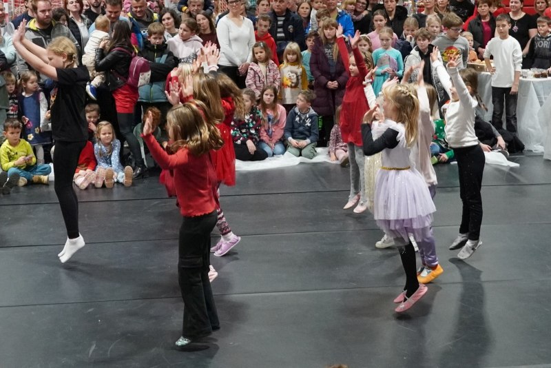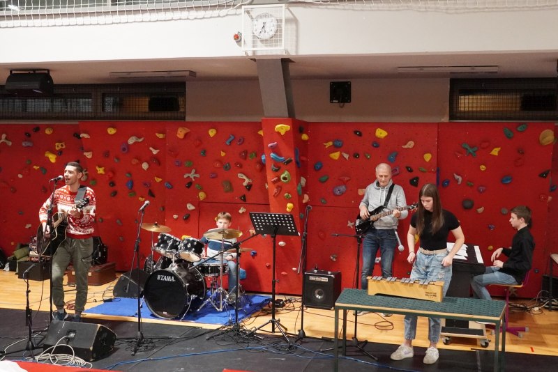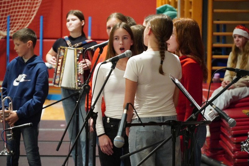 Učenci so se pomešali med obiskovalce in jim ponujali srečke – vsaka od njih je bila dobitna. Zaživela sta menjalnica knjig in božično kolo sreče, na balkonu pa so se otroci lahko pomerili v stavah o dolžini vrvi ter v floorballu oz. dvoranskem hokeju.