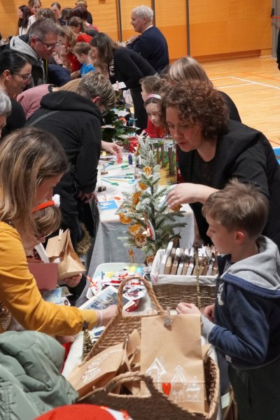 Živahno dogajanje, ki se je zaključilo z dobrodelnim sejmom, se je za otroke iz vrtca in šole v resnici začelo že veliko prej. Že konec novembra so z vzgojiteljicami in učiteljicami ter učitelji začeli ustvarjati raznolike izdelke, ki so jih včeraj cel dan skrbno razvrščali po stojnicah v šolski telovadnici, da bi že na prvi pogled privabili čim več obiskovalcev.