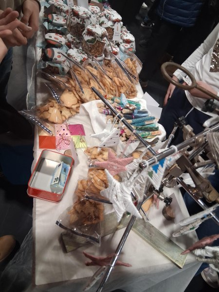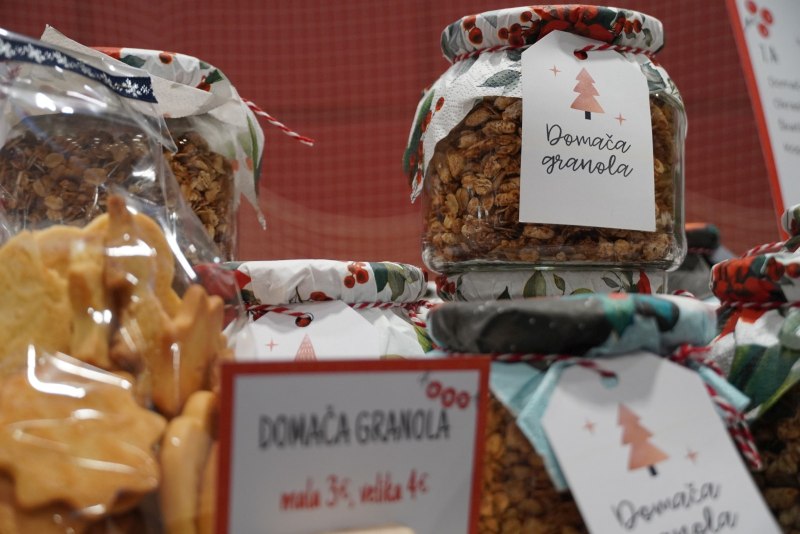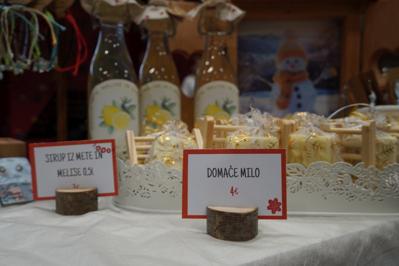 Med stojnicami z izdelki so se po velikem prostoru širili vabljive vonjave po žemljicah, piškotih, cimetovih rolicah, čokoladnih lizikah, štrudlju, čaju in vroči čokoladi.