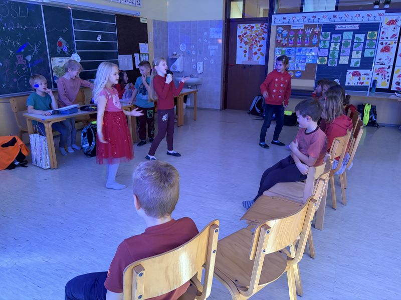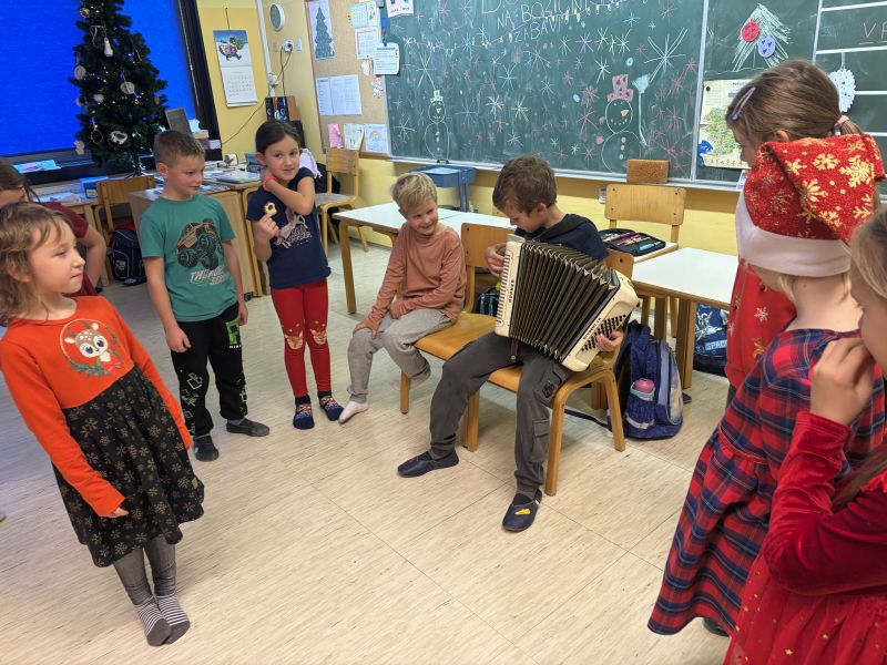 Namesto običajne ure glasbe smo imeli karaoke. Skupaj smo prepevali zimske in božične pesmi, se ob njih zavrteli ter se ob tem neizmerno zabavali. Posebno veselje nam je pričaral učenec Marcel, ki nam je zaigral več znanih melodij, mi pa smo mu z veseljem prisluhnili in z njim prepevali.