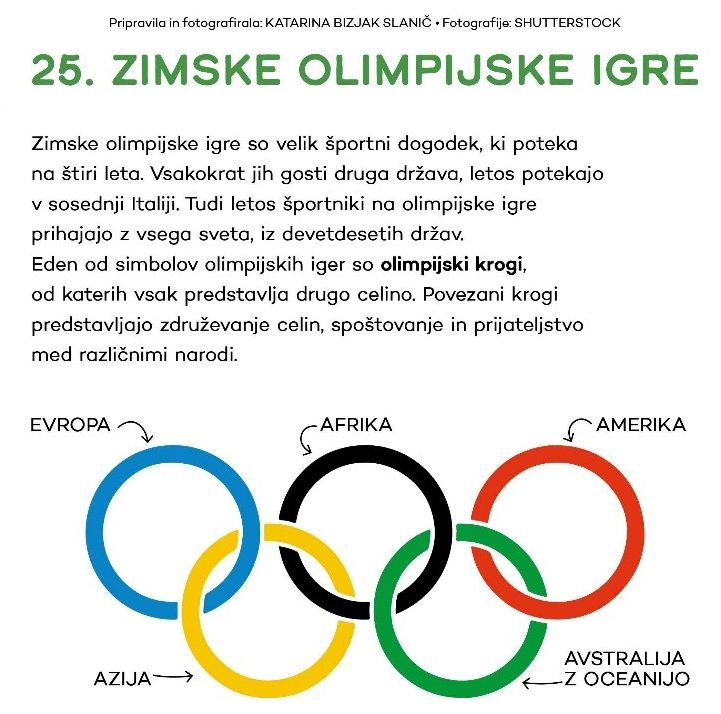 V Italiji poteka ta čas največji športni dogodek na svetu. To so zimske olimpijske igre, ki se odvijajo že petindvajsetič. Za učenke in učence predmetne stopnje so se v olimpijskem duhu v telovadnici od torka naprej vsak glavni odmor odvijale športne dejavnosti, na razredni stopnji pa so se z olimpizmom srečali med urami športa. Pomerili so se v eni od olimpijskih disciplin, in sicer v prirejeni obliki biatlona, in se sprostili ob glasbi in plesu. Olimpijske vrednote VIŠJE, HITREJE, MOČNEJE so tokrat zamenjali veselje, sodelovanje, zabava in tudi kanček tekmovalnosti. Predvsem pa je pomembno spoštovanje pravih športnih vrednot.
