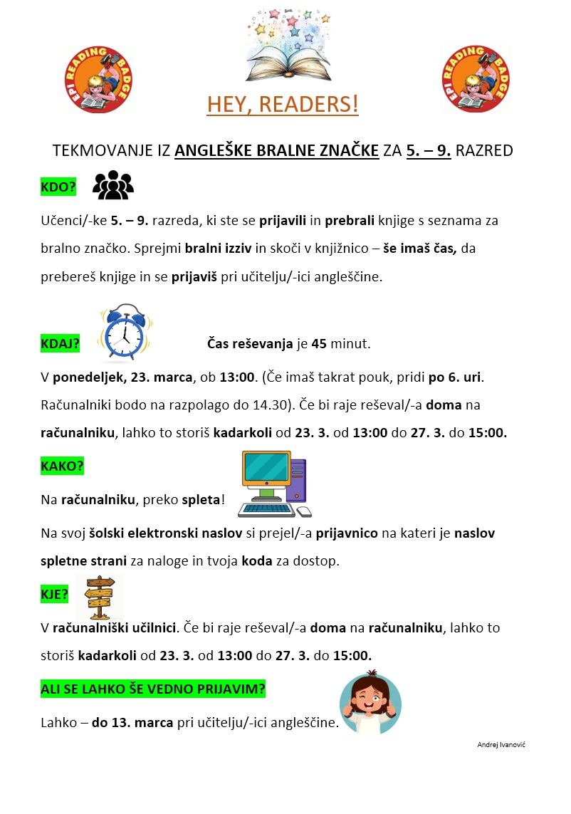 TEKMOVANJE IZ ANGLEŠKE BRALNE ZNAČKE ZA 5. – 9. RAZRED