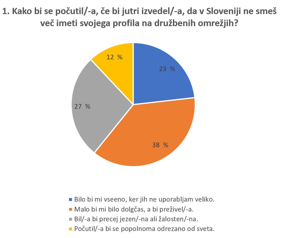 Ker so mnenja mladih deljena, smo se šolske novinarke odločile, da mnenja naših učenk in učencev od 7. do 9. razreda preverimo z anketo. Oblikovale smo 10 vprašanj, s katerimi smo jih spraševale, kako bi se odzvali, če bi do prepovedi družbenih omrežij prišlo tudi v Sloveniji.