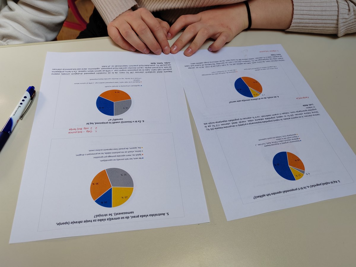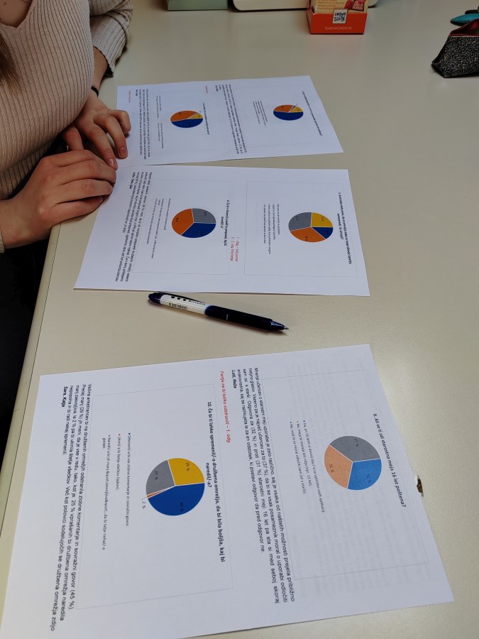 Oglejte si podrobne rezultate ankete v grafih ter interpretacije nekaterih od desetih vprašanj, na katera so odgovarjali učenke in učenci od 7. do 9. razreda