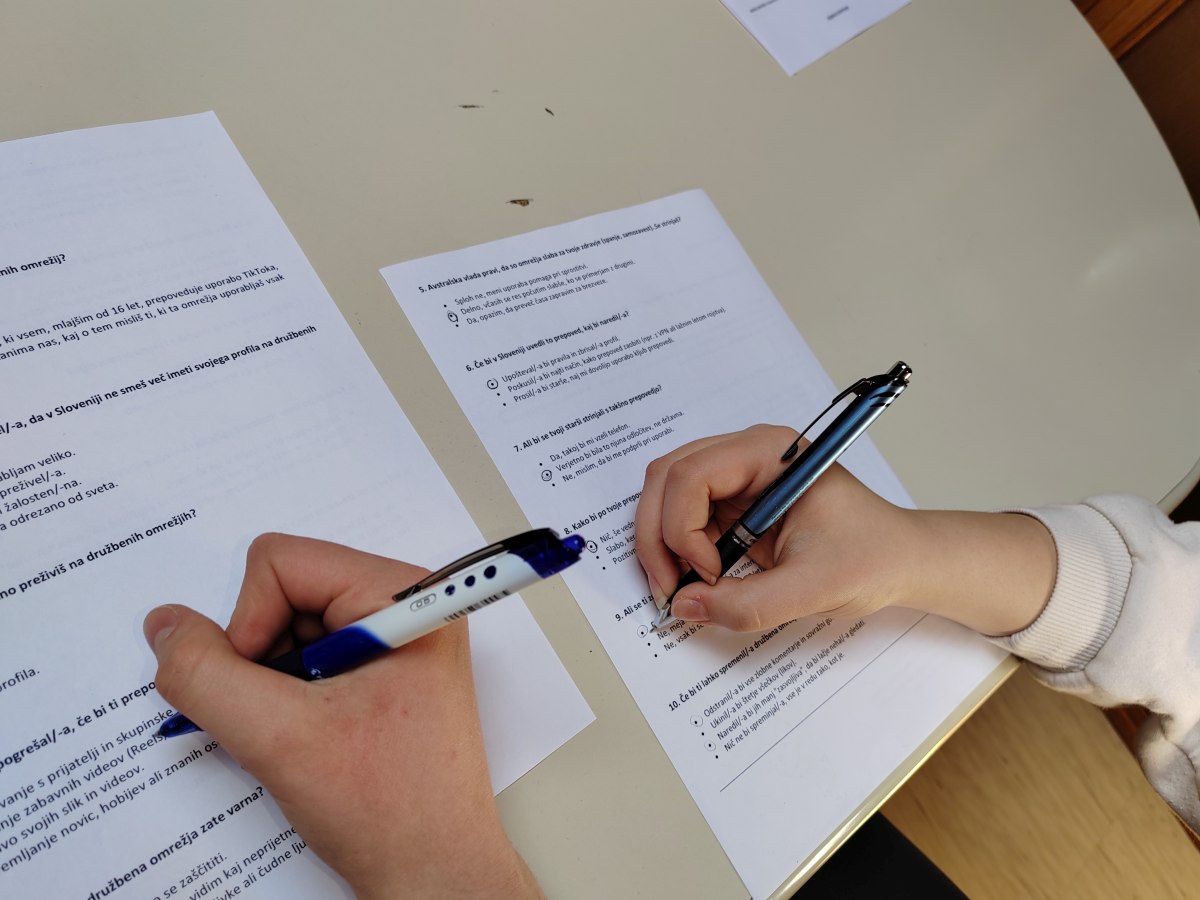 V preteklih mesecih smo bili priča kar nekaj razpravam o tem, kako družbena omrežja vplivajo na mlade, na njihove odnose in duševno zdravje. Da bi preprečile negativne posledice tega sodobnega pojava, številne vlade razmišljajo o tem, da bi zakonsko omejile uporabo družbenih omrežij in določile starostno mejo, do katere bi uporabo mladim prepovedale. Da bi izvedele, kaj o morebitni prepovedi uporabe družbenih omrežij za mlade menijo naši najstniki, so šolske novinarke že januarja sestavile anketo z desetimi vprašanji o tem, kaj mladi v 7. 8. in 9. razredu mislijo o tem. Odgovore so statistično obdelale, pokomentirale in predstavile rezultate.