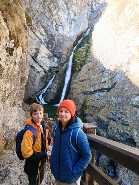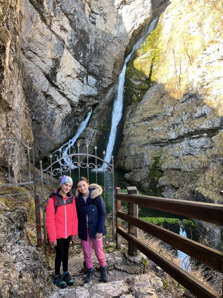 Danes smo se zbudili zjutraj ob 7:00. Urediti smo morali sobe in pripraviti kovčke. Zato smo imeli le pol ure. Ob 7:30 smo imeli zajtrk. Danes smo imeli zajtrk prej, ker smo šli kasneje na pohod proti slapu Savica. Zbrali smo se zunaj pred CŠOD in se odpravili na pot. Hodili smo nekaj minut, potem je mene, Mojco in učiteljico prišel iskat učitelj CŠOD, Robert. Odpeljali smo se in hitro smo prispeli do vhoda. Nato smo morale še malo hoditi, saj je do slapa vodilo 500 stopnic. Na višji nadmorski višini, kot smo bili, je bilo bolj sončno. Dan je bil topel, sončen in lep. Ko smo prišle nazaj, smo šle najprej do slapu in se slikale. Nato je sledila malica. Po malici smo se še malo pogrele na toplem soncu, kasneje pa odpravile nazaj. Med potjo smo se ustavile v trgovini in midve sva si kupili spominke. Potem smo počakale Roberta, ki nas je prišel odpeljat nazaj v dom. Imeli sva se lepo, slap je bil čudovit. Danes tudi odhajamo domov. Šola v naravi je bila naporna, vendar sva se imeli lepo. Komaj čakava, da prideva domov.