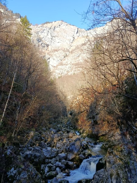 Prvi dan šole v naravi mi je bil zelo všeč, ker smo šli na večerni sprehod. Všeč mi je bilo, ko smo imeli veliko prostega časa po kosilu in po prihodu v dom. Za aktivnost prvega dne je naša skupina imela spoznavanje kamnin v Bohinju. Ogledali smo si kamniti stolpec, ki ima kamnine razvrščene po starosti in zgradbi kamna. Nato pa smo šli po gozdu in si jih ogledovali še v naravnem okolju. Po kratkem sprehodu pa smo imeli razlago o posamezni kamnini, o njeni značilnosti in nastanku. Potem pa je vsak predstavil eno kamnino, drugi smo pa ugibali, katero opisuje.