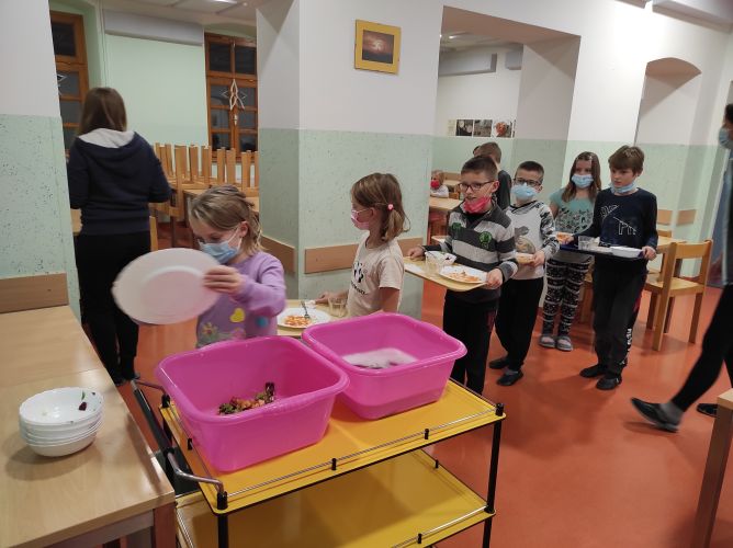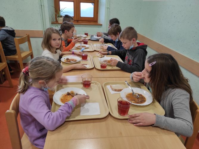 Šli smo iz razreda, vzeli kovčke in šli na avtobus. Ko smo prispeli do cilja, je zelo deževalo in pihalo. Razdelili smo se po sobah, razpakirali in postlali postelje. Postiljanje je bilo naporno. Potem smo se nekaj časa igrali. Šli smo na astronomske teme. Domen je zelo veliko vedel o vesolju. Za večerjo smo imeli odlične makarone in solato. Zunaj je začelo snežiti. Odšli smo na sprehod. Ker je bila že tema, smo s seboj vzeli naglavne lučke. Veliko smo se kepali. Bilo je zelo zelo dobro. Ko smo prišli nazaj, smo se stuširali in umili zobe. Učiteljica nam bo prebrala pravljico in potem bomo šli spat. Za nami je res lep dan.