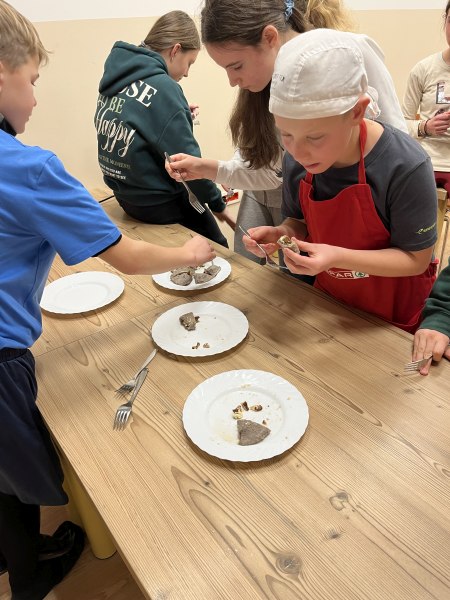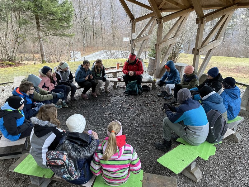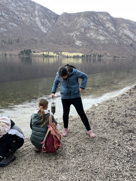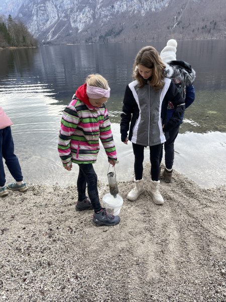 Prvi dan šole v naravi mi je bil zelo všeč, ker smo šli na večerni sprehod. Všeč mi je bilo, ko smo imeli veliko prostega časa po kosilu in po prihodu v dom. Za aktivnost prvega dne je naša skupina imela spoznavanje kamnin v Bohinju. Ogledali smo si kamniti stolpec, ki ima kamnine razvrščene po starosti in zgradbi kamna. Nato pa smo šli po gozdu in si jih ogledovali še v naravnem okolju. Po kratkem sprehodu pa smo imeli razlago o posamezni kamnini, o njeni značilnosti in nastanku. Potem pa je vsak predstavil eno kamnino, drugi smo pa ugibali, katero opisuje.