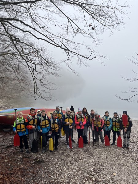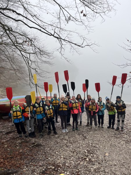 V torek, 16. decembra, smo se prebudili ob 7. uri in takoj postlali postelje ter si uredili svoje sobe. Jutro smo začeli z jutranjo telovadbo. Po telovadbi smo imeli zajtrk, takoj po tem pa smo se razdelili v skupine in se odpravili na dejavnosti. Naša skupina a in skupina c smo se odpravili na Bohinjsko jezero veslat s kanuji. Potem smo odšli na kosilo. Po kosilu smo imeli nekaj prostega časa, potem pa odšli spet vsak na svoje dejavnosti. Za tem smo imeli spet nekaj prostega časa za igro, kasneje pa večerjo, ki jo je skuhala ena skupina na popoldanskih dejavnostih – ajdovi krapi in piščančja obara.